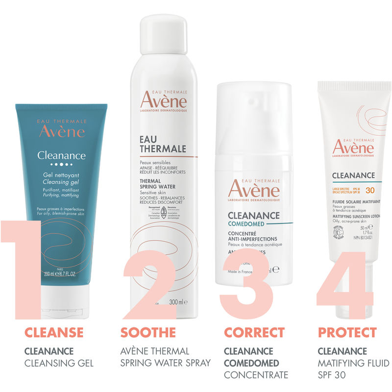 A purifying, lightly foaming gel cleanser for oily and/or acne-prone skin. Its formula that respects sensitive skin combines a unique combination of active ingredients with triple benefits: gentle cleansing thanks to a gentle cleansing base, a mattifying effect guaranteed by Comedoclastin™, a plant-based active ingredient derived from milk thistle seeds with patented* properties that reduce excess sebum, and comfort provided by soothing and anti-irritant Avène Thermal Spring Water. Skin is clean, fresh, purified and less shiny. Cleanance Cleansing Gel is suitable for contact lens wearers. With its physiological pH, it is soap-free and offers very good skin tolerance. Biodegradable formula**.
