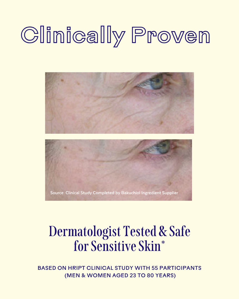 The bio-retinol in Skin Hero comes from Bakuchiol, a plant-based retinol alternative. Bakuchiol delivers the same skin-improving results of retinol - without the irritation. Many studies have shown that Bakuchiol actually outperforms retinol in increasing collagen production and reducing skin inflammation.