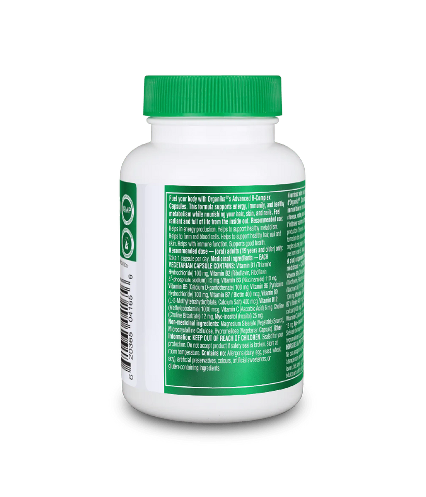MEDICAL INGREDIENTS: (PER CAPSULE): Vitamin B1 (Thiamine Hydrochloride) 100 mg, Vitamin B2 (Riboflavin, Riboflavin 5’-phosphate sodium) 15 mg, Vitamin B3 (Niacinamide) 110 mg, Vitamin B5 (Calcium D-pantothenate) 100 mg, Vitamin B6 (Pyridoxine Hydrochloride) 100 mg, Vitamin B7 / Biotin 400 mcg, Vitamin B9 (L-5-Methyltetrahydrofolate, Calcium Salt) 400 mcg, Vitamin B12 (Methylcobalamin) 1000 mcg, Vitamin C (Ascorbic Acid) 6 mg, Choline (Choline Bitartrate) 12 mg, Myo-inositol (Inositol) 25 mg.