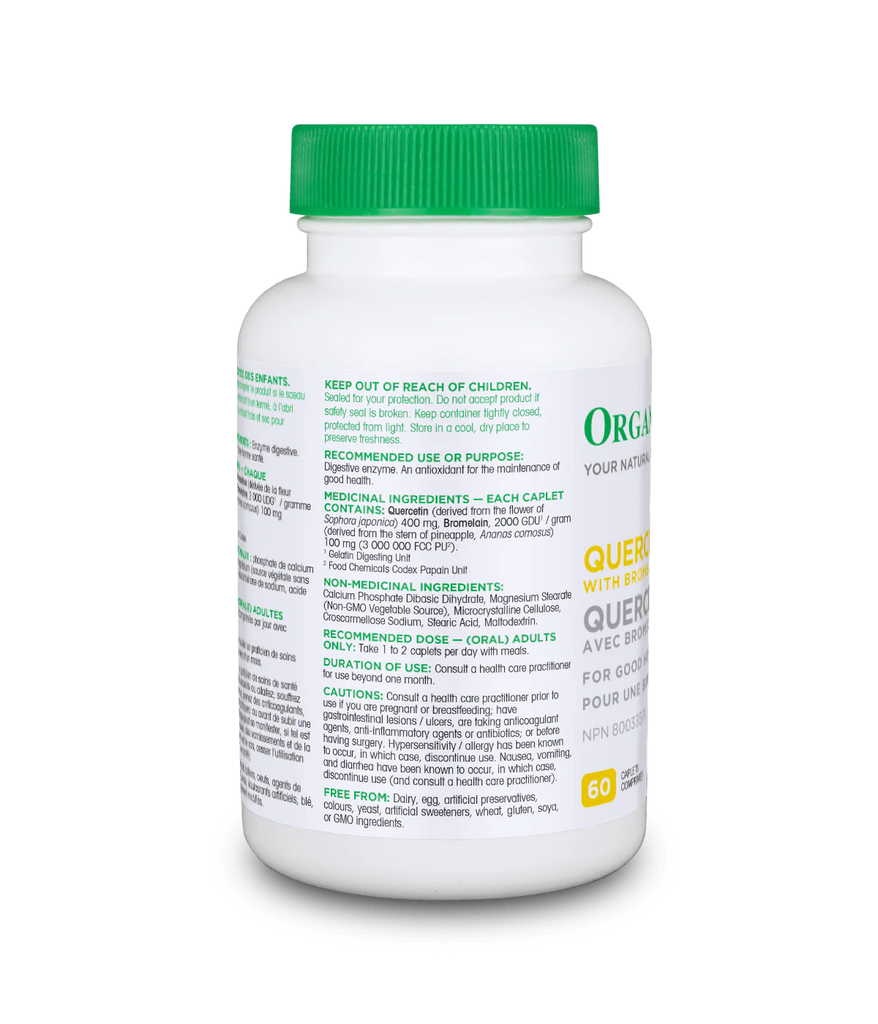 Quercetin, an antioxidant widely found in plant foods, has been studied particularly for its antihistamine and antiviral properties. Bromelain, when in combination with quercetin, helps to improve its absorption.