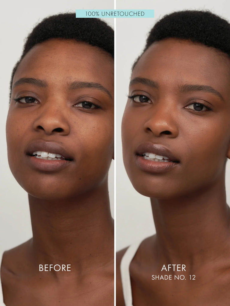 Glass Skin Foundation in 12 - Deep N/W is for a tan to deep skin with neutral to warm yellow undertones.
